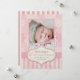 Mande a foto de Natal do seu Bebê nesta bela design de cartão de saudação de Natal rosa e creme com flocos de neve, faixas cor-de-rosa e as palavras "Feliz Natal" em roteiro de rico. Mostrado no Papel Metálico de Gelo. Substitua a foto de exemplo por sua e adicione seus nomes. Precisa de ajuda para personalizar o contato luxuryweddinginvitations@gmail.com