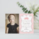 Como um conto de fadas, este cartão com fotos de agradecimentos bonito vem com um envelope e mostra a foto do seu amiguinho. Uma bela faixa branca encaracolada com uma coroa rosa fofa e colocada sobre um fundo de duas faixas cor-de-rosa. Procure nossos convites, adesivos, botões personalizados da Princesa, postagem, placas de jardim, cartões de banner DIY também.