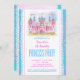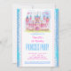 Um convite encantador e mágico para a sua Festa Princesa. Possui um lindo castelo junto com os detalhes da sua festa. A parte de trás do convite traz uma alegria "Parabéns". Um doce e encantador convite para sua pequena Princesa!