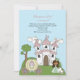 Se a sua menina adora jogar princesa, este convite é perfeito para a festa dela. Ele apresenta uma princesa vestida de verde com sua carruagem real e seu castelo ao fundo. O unicórnio dela fica ao seu lado.O cartão é fácil de personalizar com seu texto, fonte, cor da fonte e escolha de seis tipos de papel.