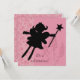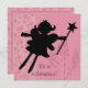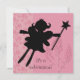 Uma silhueta de uma princesa feericamente com uma varinha em um fundo florescido cor-de-rosa e em áreas você pode facilmente adicionar seus próprios específicos do partido em um convite satisfazer sure sua princesa pequena!