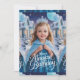 Este design de aniversário encantador apresenta uma jovem princesa em um vestido azul brilhante e coroa prateada, cercado por balões azuis flutuantes e um pano de fundo de inverno nevado. A escritura elegante diz "Tenha um Aniversário Mágico", fazer perfeito para crianças, especialmente pequenos fãs princesas. Ideal para cartões de aniversário, convites de festas, ou arte de muro, este design de inspiração de conto de fadas, sonhador, captura a maravilha e a alegria de uma celebração mágica de aniversário.