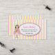 Cartão telefónico da data do jogo da menina doce, feito em um fundo do rosa, do amarelo, e o branco do teste padrão listrado. Uma área de texto oval branca, no meio, é decorada com uma borda cor-de-rosa e uns gráficos bonitos do país, de uma princesa da menina, guardarando um sapo. Personalize o texto para o senhor mesmo, como um cartão das mamães, ou para sua criança. Grande maneira de permanecer em contacto com outras mães e de arranjar datas do jogo, festas de aniversário, e capoeiras de assento do bebê.