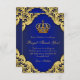 Príncipe festa de aniversário, obrigado a cartas com a coroa azul e dourada em um fundo azul real e espiral dourada. Este belo cartões de agradecimentos de festa de aniversário azul real e ouro, de estilo plano, é facilmente personalizado adicionando sua mensagem. Este é um design impresso sem joias reais, brilho, etc.