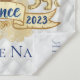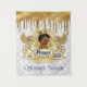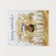 Adorável Príncipe Africano usando uma coroa de ouro sobre um brasão de leão régio dourado e uma faixa com um fundo gotejado de brilho dourado e padrão de diamantes brancos. Texto “Príncipe” em Azul Real na faixa central e “est. 2022” à esquerda e à direita. Personalize com o seu próprio texto na parte inferior. ©2022 Miss Sassy Party Designs