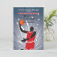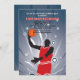 Marc GRANDE com este design desportivo que satisfará meninos de toda a idade. O cartão caracteriza um fundo abstrato cinzento e do branco com um jogador de equipa vestido no vermelho que guardara um basquetebol.