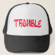 Use sua atitude com orgulho e em alto e bom som. Esse boné de caminhoneiro apresenta **“TROUBLE”** em uma fonte grafite vermelha feroz com uma estrela rebelde no “O.” Tudo se resume a energia ousada, atitude de rua e possuir seu estilo.