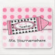Um mousepad que caracteriza um fundo cor-de-rosa com bolinhas cor-de-rosa. Ilustração de combinar o pastel cor-de-rosa no centro. A etiqueta do pastel é branca com bolinhas pretas. O texto no pastel lê de "o professor Pre-K." Personalize com seu nome.