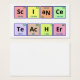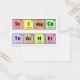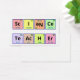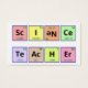 Cartão de Visita. As palavras "Professor de Ciência" são soletradas usando símbolos da mesa periódica de elementos. O elemento Neon (Ne) foi virado de cabeça para baixo para obter as letras necessárias para a palavra "ciência".