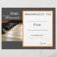 Professor de música para certificado de prêmio de