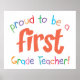 De volta à impressão da escola para professores do primeiro grau. Você ama ensinar? Conte a todos o quão orgulhoso você é de ser um professor de escola primária com este poster colorido que lê, "Orgulhoso de ser um Professor de Primeira Série" em tipos divertidos e amigáveis para as crianças. Faz um presente maravilhoso de volta à escola para professores de primeiro ano!