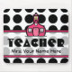 Um mousepad para os professores que caracterizam um fundo branco com bolinhas pretas. O texto dentro da seção center completa com guarnição cor-de-rosa é customizável. Logotipo da escola cor-de-rosa acima do texto. Procure mais presentes das bolinhas na categoria das "bolinhas" da loja cor-de-rosa da escola.