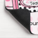Um mousepad que caracteriza um fundo cor-de-rosa com bolinhas cor-de-rosa. Ilustração de combinar o pastel cor-de-rosa no centro. A etiqueta do pastel é branca com bolinhas pretas. O texto no pastel lê o "ò professor da categoria." Personalize com seu nome.