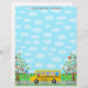 Escreva suas notas de sala de aula em estilo com este design de ônibus escolar personalizado e fofo para professores. Esta design é perfeita para uma classe elementar ou pré-escolar. Mostra um monte de animais fofinhos no ônibus escolar. O urso está dirigindo, a raposa está escrevendo no seu caderno, a coruja está olhando pela janela, o porco está sendo um estudante bem comportado, e o coelho está acenando uma bandeira no banco de trás. Ao redor do ônibus, é um dia feliz com flores, nuvens, árvores e pássaros. Há muito espaço para escrever no céu nublado claro. Use o modelo fácil para adicionar seu texto. "Personalizar" para fazer alterações mais detalhadas. Volte para a escola em estilo com este design bonito e personalizado.