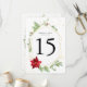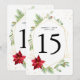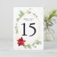 Números de mesa verde de feriado dos Partidos Temáticos design apresenta botânicos com cor d'água pintados manualmente e uma bonito poinsettia vermelha. O design é emoldurado num diamante dourado duplo e acentuado com manchas de ouro correspondentes. #Natal #Feriados #FestaFeriado