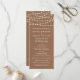 Simples, mas elegante, as luzes de cordas na coleção de casamento rustic Kraft é um design impressionante com luzes de cordas brancas adoráveis em um fundo de efeito Kraft, o que é perfeito para qualquer celebração de casamento rústico. Esses programas podem ser personalizados para sua ocasião especial e tornariam a ordem perfeita de serviço para seu casamento, chá de panela, festa de noivado, festa de aniversário e muitas outras ocasiões especiais. Adicione seu texto personalizado a este design usando as caixas "Editar este modelo design" no lado direito do item, ou clique no botão azul "Personalizar" para organizar o texto, alterar as fontes e cores e também adicionar informações ou imagens adicionais a este design. EXIBIR ITENS CORRESPONDENTES PARA ESTA COLEÇÃO