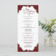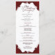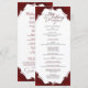 Este cartão do programa de núpcias apresenta um design moderno minimalista em vermelho ousado, criando uma impressão refinada e elegante. A primeira página exibe perfeitamente os detalhes do casamento em um formato claro e na moda, enquanto a parte traseira destaca os nomes do casal em um layout simples e estruturado que pode ser personalizado. Os tons vermelhos ricos melhoram o estilo minimalista, fazer este cartão de programa perfeito para casamentos elegantes, formais e contemporâneos.