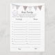 Um jogo divertido para a festa de revelação de gênero é o jogo de adivinhação. Este jogo apresenta uma cinza de prata e um banner marrom no topo e um elefante para bebês sentado. No verso está um elefante bebê sorrindo e erguendo seu tronco para cima com modelos.