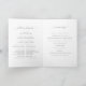 Um belo programa de casamento dobrado, perfeito para um casamento no inverno, com uma camada floral de anêmonas e verde e uma amante de cinza clara.
