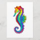Articulação artificial, brilhante, arco-íris, cavalo de mar poligonal sobre fundo branco. Tatuagem brilhante.