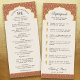 Celebre a elegância eterno da sua cerimônia de casamento hindu com as nossas cartas de programação. Cada cartão apresenta um belo design de lotus floral deco de arte numa folha de ouro falso, simbolizando a pureza e o despertar espiritual nas tradições hindus. Personalize o programa com a ordem dos eventos para sua cerimônia, explicações dos rituais e quaisquer mensagens especiais que você queira compartilhar. A parte de trás da placa apresenta uma explicação detalhada do Saptapadi (Sete Etapas), permitindo que os convidados compreendam o significado deste ritual sagrado. Escolha entre uma seleção de cores cativantes - preto, azul, ameixa, vermelho e branco - para complementar perfeitamente sua decoração de casamento. Estes programas elegantes não só guiarão os vossos hóspedes através da cerimônia, como também servirão como um tesouro para que eles apreciem muito depois do dia especial.