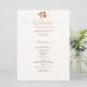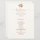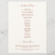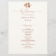 Um pequeno ramo da folhagem de cobre de outono, em aquarela, e um esquema de cor de cobre e ferrugem enfeitam este elegante, simples, clássico e moderno programa de cerimônia de casamento outono. Apresenta caligrafia moderna e elegante com amplos florescimentos. Luxuoso, mas simples, clássico, mas chique, moderno, mas eterno. Uma escolha encantadora para um casamento no outono com cobre, laranja queimada, terracota, bege, vermelho, laranja e outras matizes de outono.