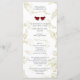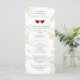 Adoráveis pássaros e folhagem foliar, design ruidosa em vermelho e ouro. O cartão do programa de casamento é de dois lados com os detalhes da cerimônia nos participantes da frente e da festa de casamento no verso.