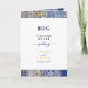 Um moderno, mas rústico, design de casamento do padrão dos azulejos portugueses mediterrânicos. Um design temático mediterrânico colorido que usa diferentes designs de azulejo para criar um elegante design de casamento de verão. Um charmoso português, italiano e espanhol influenciou o design de azulejo do Mediterrâneo usando a tipografia da escrita clássica. Um elegante azulejo português temia a design de cartão do programa de casamento da ordem de serviço com elementos modernos. Os convites de casamento e outros artigos de papelaria também estão disponíveis.