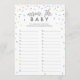 Bela sprinkles, o cartão de jogo do nome do bebê. Os convidados se enchem, quem quer que apareça com um nome para cada letra do alfabeto, ganha mais rápido!