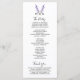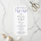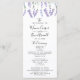 Belo Programa de Casamento de Lavandas, desenhado com lindas flores pintadas à mão com flores de lavanda com tipo aquarela estilizando. Este é um design estilo country para casamentos primavera, verão e ao ar livre. Personalize este design com as informações da sua cerimônia e no verso, informações de festa de casamento e obrigado personalizado. A cor de fundo está definida como branca, mas você pode escolher uma cor de preenchimento de sua escolha.