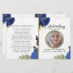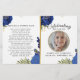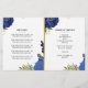 Personalize este programa funerário moderno e elegante com sua própria foto e texto para criar um tributo especial a seu amado. Um programa "In Loving Memory" que inclui o programa "Blue Floral botanical and gold accent memorial". No cobrir da frente está uma foto do seu amado, seu nome, datas, o local do memorial e a data do evento. Na dentro está um obituário e uma ordem de serviço, e na parte de trás está uma nota de agradecimento e o local da Nossa loja também oferece outros designs que estão oferecendo verde botânico com rosas e folhas de sotaque design e brilho/ouro e folhagem Eucalipto para atender a todas as demandas.