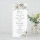 Programa de Casamento Verde Cor-de-Rosa Esbranquiçada Programa de Casamento Verde Rosa Esmagador. Este na moda e elegante convite de casamento apresenta rosas rosa-rosa pinceladas, pintadas à mão e lindas cores d'água. Localize itens correspondentes na Coleção de Verduras Rosa-Rosa Eucalyptus Blush Watercolor.