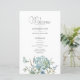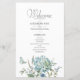 Este programa de casamento botânico boêmico azul é simples e elegante. Personalize este design com suas informações. Conclua o olhar com muitos outros artigos de papelaria e acessórios dentro deste tema. Baseado em uma cor d'água original por © Lisa Audit Art. Envolva-se com arte animadora.