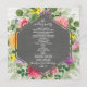 Ilustração de um design floral botânico com fundo de tijolo e texto branco.