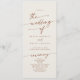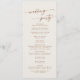 Este programa de casamento de chiclete Bohemian Creme é perfeito para uma cerimônia de casamento minimalista. O teracotta neutro queimado laranja e creme design boêmico moderno apresenta uma caligrafia rustica simples com um estilo único, mas clássico. Personalize seu programa de casamento com seus nomes, data do casamento, local, ordem de serviço, festa de casamento e opcional no memorial amoroso.