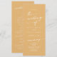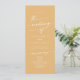 Este programa de casamento do boho chic yellow marigold é perfeito para uma cerimônia de casamento minimalista. A design boêmica moderna, colorida e amarela brilhante, apresenta uma caligrafia rústica simples com um estilo único, mas clássico. Personalize seu programa de casamento com seus nomes, data do casamento, local, ordem de serviço, festa de casamento e opcional no memorial amoroso.