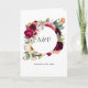 Boho, convite floral de casamento, com peônias e flores anêmonas, verde e penas em sotaques de ameixa e rosa pincelado personalizável para suas especificidades.