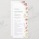 This boho meadow wildflower wedding program features soft pastel meadow florals arranged in a vertical, airy layout designed specifically for ceremony flow. The delicate watercolor wildflowers frame the content without overpowering the text, allowing the order of events and wedding party details to remain clear and elegant.