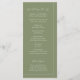 The front side offers a stunning contrast with a faux linen texture, framed by a clean sage green border and adorned with a subtle, hand-drawn botanical accent in the corner. Your program card is presented in a stylish mix of elegant serif and flowing script fonts, all in a matching sage green hue.