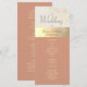 Boho, elegante e moderno roteiro de caligrafia, programa de casamento de terracotta, com um lugar floral de ouro falso.