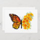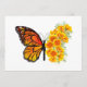 Borboleta de monarca laranja com asa decorada com papoila amarela e vibrante da Califórnia em fundo branco.