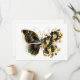 Borboleta de flores Dourada com orquídea de joias pretas, decorada com folhas de ouro sobre fundo branco.