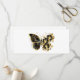 Borboleta de flores Dourada com orquídea de joias pretas, decorada com folhas de ouro sobre fundo branco.
