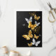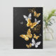 Borboletas Douradas, joias e brancas sobre fundo preto. Borboleta ouro.