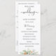 Flores e folhagem, programa de casamento, cor de água branca botânica, verde e cor de laranja de pêssego. O programa apresenta sotaque de caligrafia bonitinho com múltiplas linhas para listas de texto personalizadas para a ordem de cerimônia dos eventos, festa de casamento e nota de agradecimento.