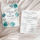 Conduza seus convidados através da sua cerimônia com este programa de casamento botânico de flores silvestres azul-turquesa. Florais suaves em tons ricos de azul-turquesa emolduram os detalhes da sua cerimônia com elegância e clareza.