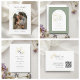 Este programa de casamento em chic e na moda apresenta um conjunto contemporâneo de fontes e elementos de script em preto, ao lado de delicados contornos florais em ouro falso contra um fundo branco nítido.