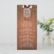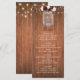 Este cartão de cardápio de boho floral de madeira russa apresenta um fundo castanho escuro, luzes de cordas no topo, e os nomes da noiva e do noivo em um pote de mason decorado com um buquê de cor de água borrado e embebido. Forneça aos seus convidados a opção de menu alterando o texto facilmente com os modelos.