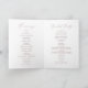 Este delicado programa de casamento dobrado por caligrafia em ouro de rosa é perfeito para um casamento moderno. A design romântica minimalista apresenta uma magnífica e elegante tipografia cor-de-rosa rosa, empoeirada, num fundo branco, com um aspecto simples e limpo.