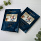 Programa memorial funerário com uma fotografia do falecido, seu nome, datas, local memorial, data do evento e elegante quadro de ouro. Na dentro está um obituário, e a ordem de serviço; e atrás de outra foto, uma nota de agradecimento e o segundo lugar para depois do funeral. Para mais personalização, clique no link "personalizar mais" e use nossa ferramenta design para modificar esse modelo. Se precisar de ajuda ou itens correspondentes, entre em contato comigo.